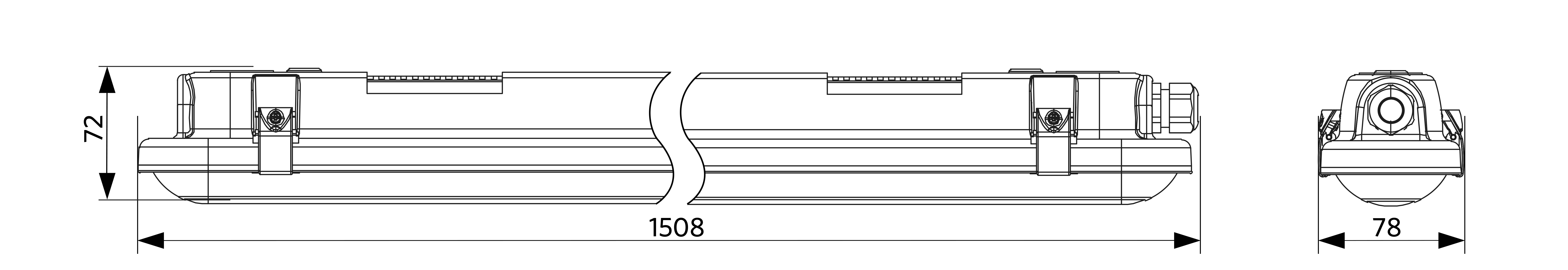Soluzione stagna classica più elegante con design a clip . Efficienza fino di 150 lm/W. Design ottimizzato del diffusore per un'illuminazione più uniforme. Possibilità di cablaggio posteriore e laterale. Fornito di clip in acciaio inossidabile per il montaggio a sospensione. Kit passanti disponibili come accessorio.