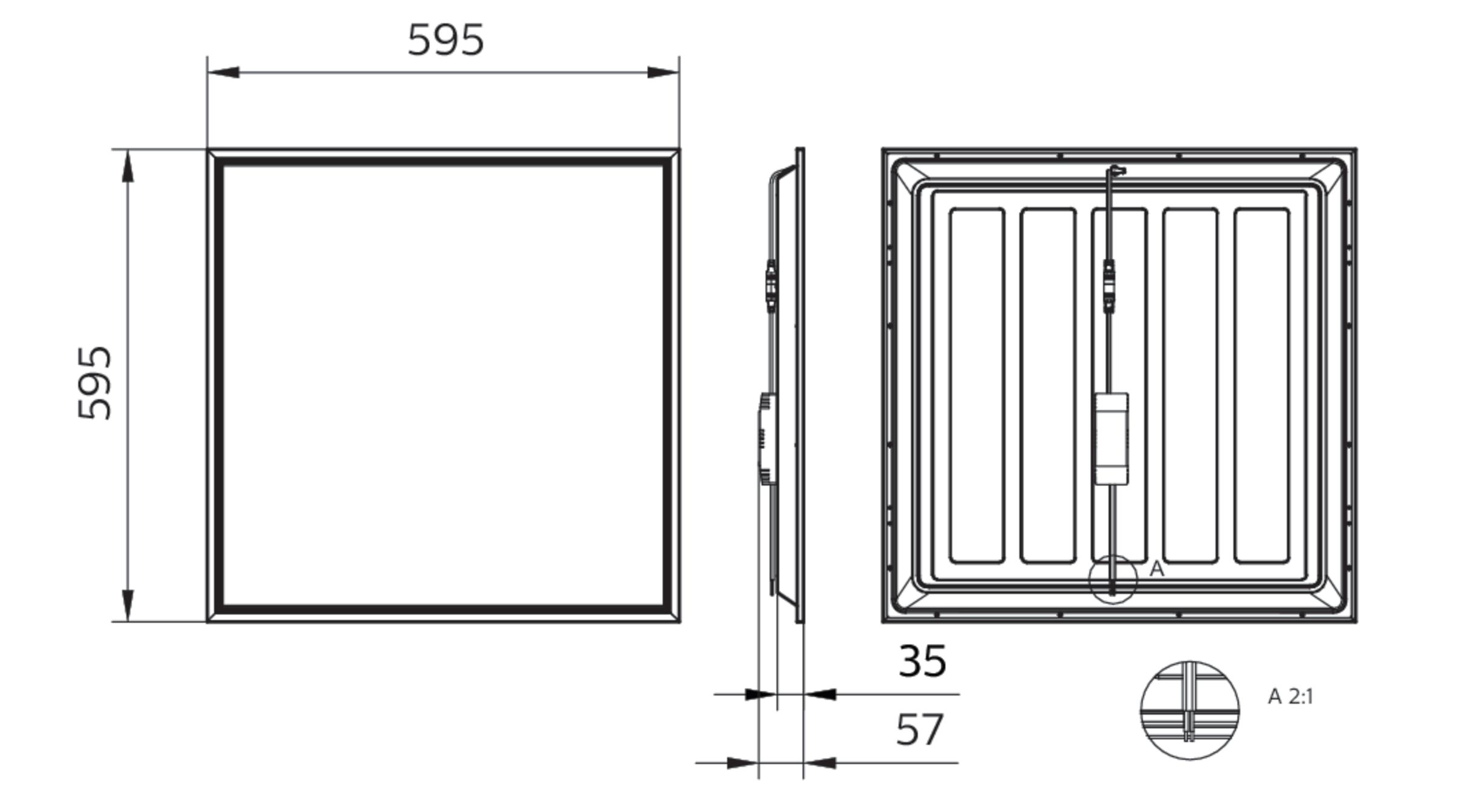 600x600 mm, Acciaio, Bianco, Bianco segnale (RAL9003), Unità di alimentazione (On/Off), 3400 lm, 34 W, 100 lm/W, 4000 K, (0.38, 0.38) SDCM â¤5, UGR19, Angolo del fascio 90°, Lente microprismatica, Acrilato, Protetto contro l'accesso con un dito, 0