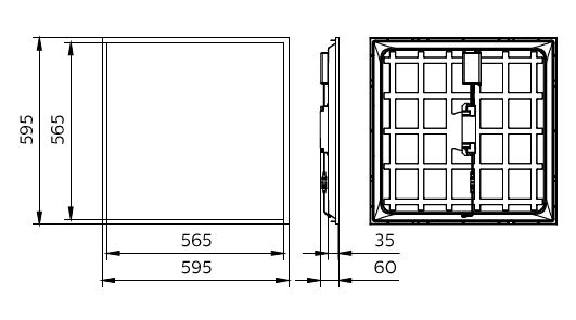 600x600 mm, Visible profile ceiling version, Acciaio, Bianco, Bianco segnale (RAL9003), Unità di alimentazione con interfaccia DALI, All-in, Multi Color Temperature, 3400 lm, 3600 lm, 28 W, 120 lm/W, 113 lm/W, 3000 K, 4000 K, (0.43, 0.40) SDCM â¤5
