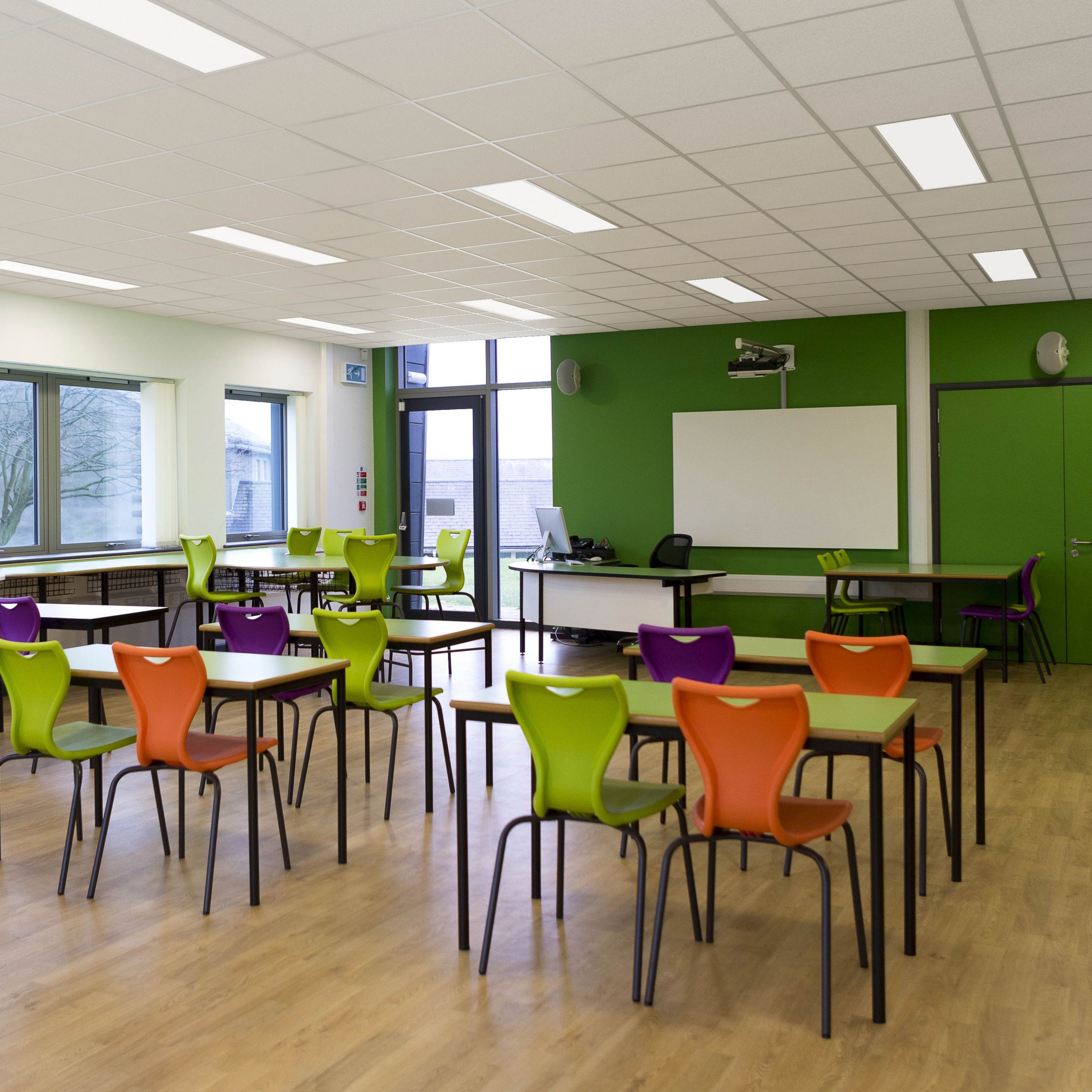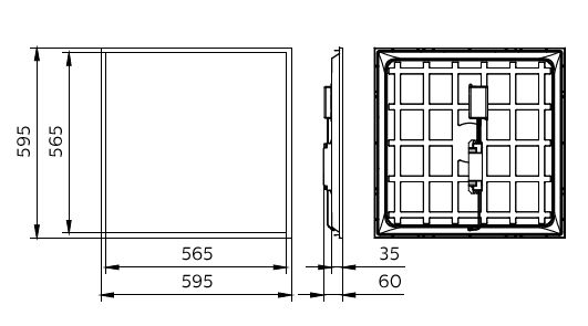 Panel, 600x600 mm, Visible profile ceiling version, Acciaio, Bianco, Bianco segnale (RAL9003), Unità di alimentazione con interfaccia DALI, 3400 lm, 28, 120 lm/W, 4000 K, (0.38, 0.38) SDCM â¤5, UGR19, Angolo del fascio 90°, Diamante, Acrilato, IP2