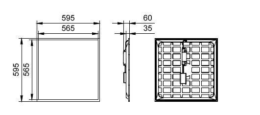 Panel, 600x600 mm, Visible profile ceiling version, Acciaio, Bianco, Bianco segnale (RAL9003), Unità di alimentazione con interfaccia DALI, 3400 lm, 28, 120 lm/W, 4000 K, (0.38, 0.38) SDCM â¤5, UGR19, Angolo del fascio 90°, Lente microprismatica,
